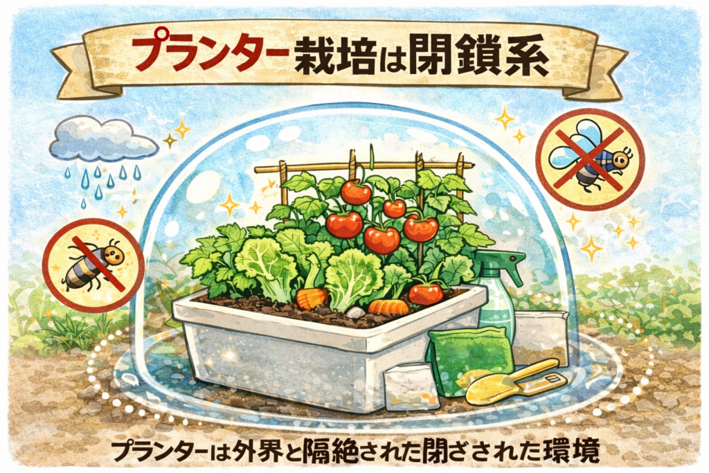 その理由は、単純に、「土が”開放系”だから」という理由です。