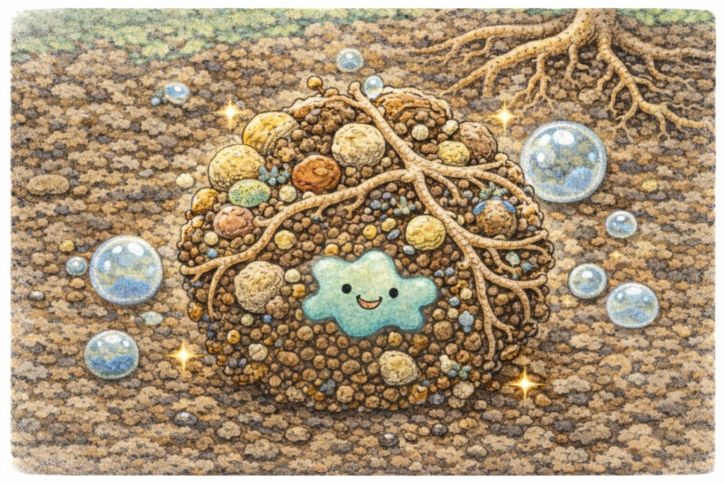 理論上は成立するはずの、「赤玉土+腐葉土+化成肥料+苦土石灰」が、実際には、微生物が少なく「団粒構造が壊れやすく再生しない状態」となりますので、物理性が大ピンチになる可能性が高いです。