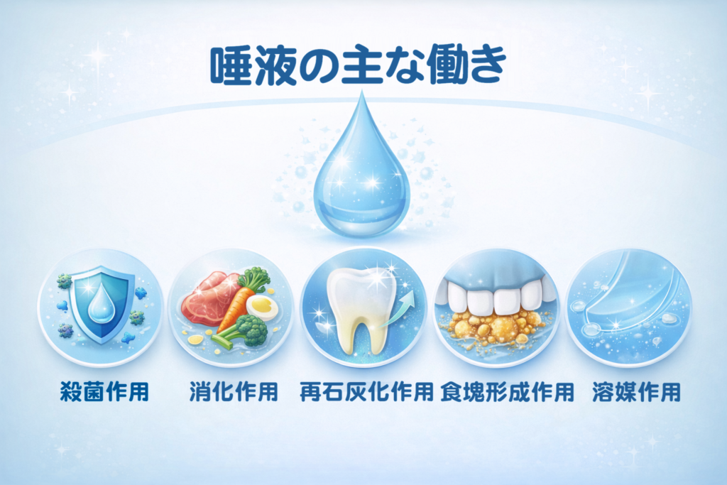 唾液には次のような働きがあります。