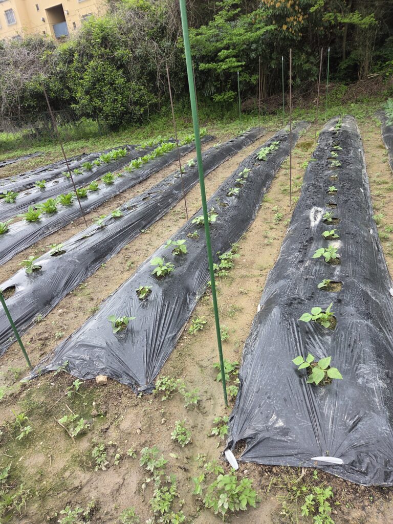 混植エリア (トマト、キュウリ、オクラなど)